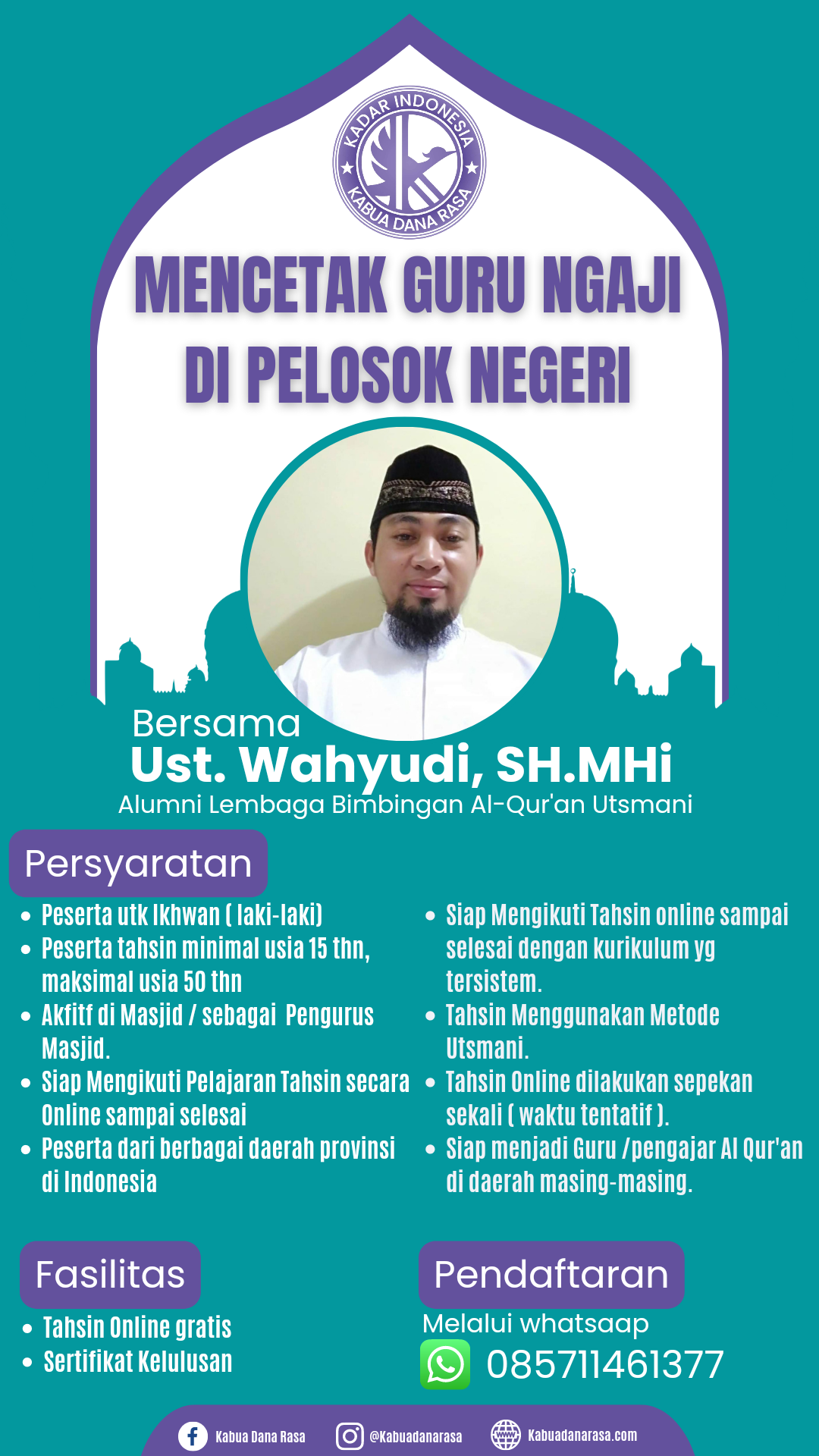 Kabuadanarasa.com_Dalam Rangka Mencetak Para Guru Ngaji dipelosok Negeri, maka kami dari yayasan Kabua Dana rasa membuka pendaftaran Program Tahsin Online Metode Utsmani, dengan persyaratan sebagai berikut :