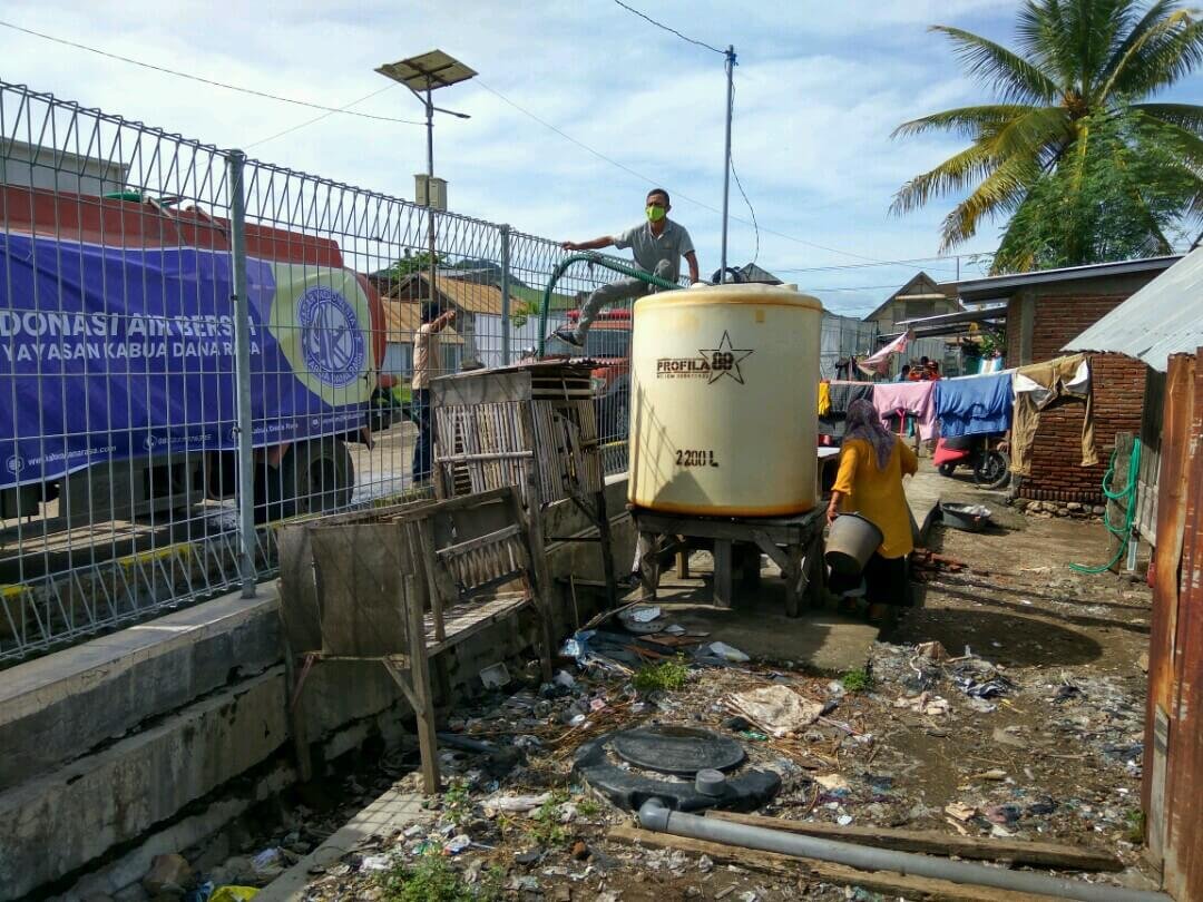 Kota Bima – Kamis, (18/2) Yayasan Kabua Dana Rasa melakukan penyaluran donasi air bersih di Tanjung RT 14. Kegiatan ini didukung pula oleh BPBD Kota Bima.