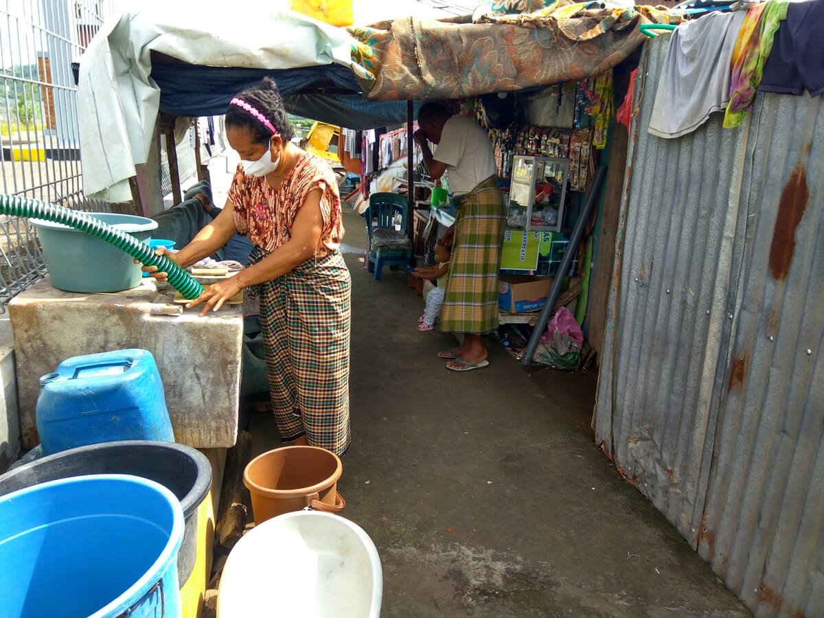 “Air bersih ini cuma kita buat minum dan bikin masakan saja, kalau untuk mandi cuma untuk bilasan terakhir saja”, cerita salah satu warga.
