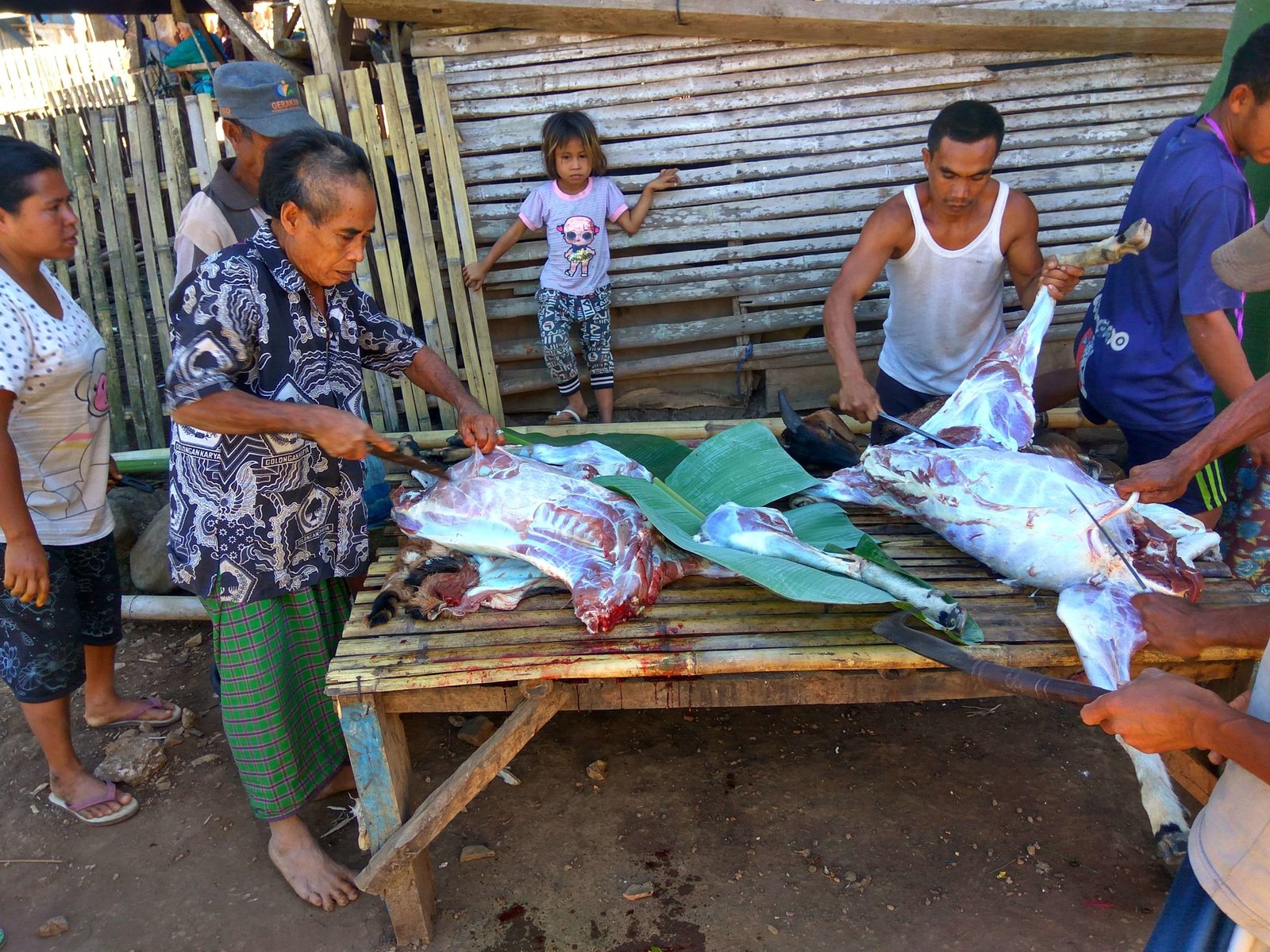 Berikut foto prosesi penyembelihan, pemotongan dan pembagian daging kurban.