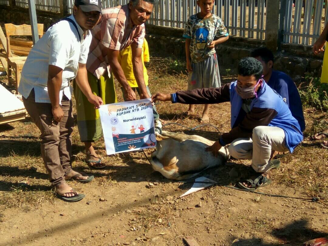 Lokasi penyembelihan 2 ekor kambing ini dilakukan pukul 09.30 wita di halaman Masjid  Al Muqorrobin, desa Ndano Na’e oleh panitia kurban Idul Adha 1441 H/ 2020 M dan disaksikan oleh beberapa masyarakat.